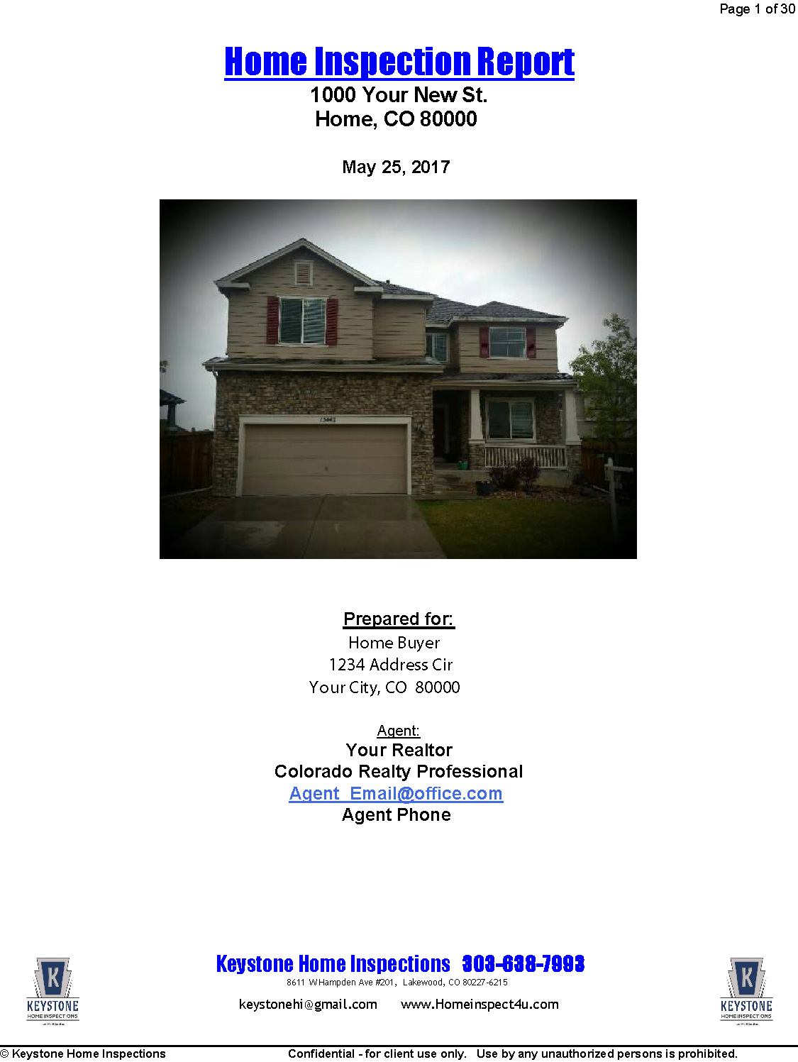 You will receive your copy of the inspection report within 24 hours. The inspector will also forward the report to your agent and any other party you or your agent designated, but not to anyone else. The report will contain numerous photographs taken during the inspection, including photos of most of the deficiencies discovered. The report will tell you which problems the inspector considered significant or hazardous. If the inspector found deficiencies that you want corrected, your agent should work with you to prepare an objection letter to present to the seller. If you or your agent need to contact the inspector to clarify details regarding the deficiencies, please call 303.638.7993.